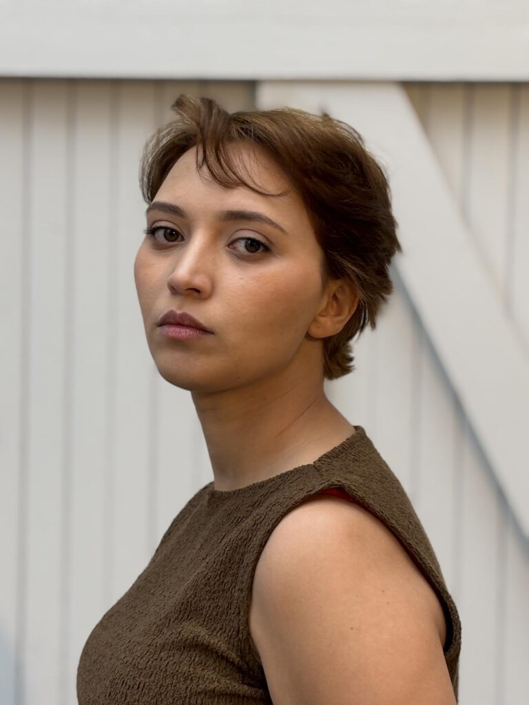 Elle développe un travail d’interprétation centré sur la présence et l’intensité du jeu.
